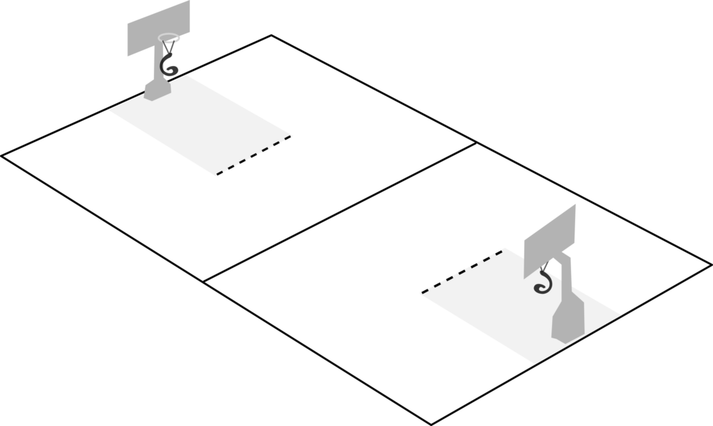 It is possible to play on a half court in both versions, with respectively 2v2 and 3v3 settings.