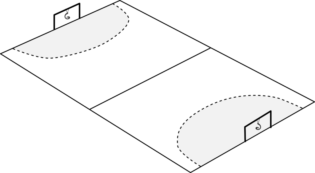 The wooden hook must be placed approximately 15–20 cm below the crossbar, centered on the goal.